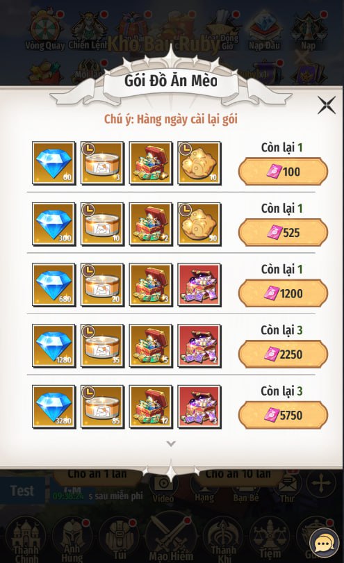 - Dùng Ruby để mua các Gói Đồ Ăn Mèo