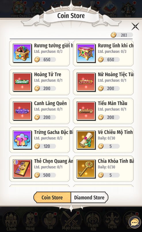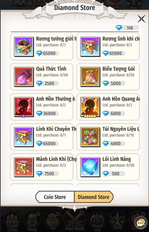 - Tại Diamond Store, dùng KC để mua vật phẩm