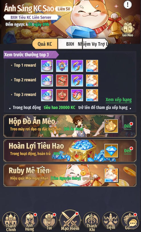 Người chơi tiêu tối thiểu 20000 KC để tham gia BXH Top Tiêu KC Liên Server